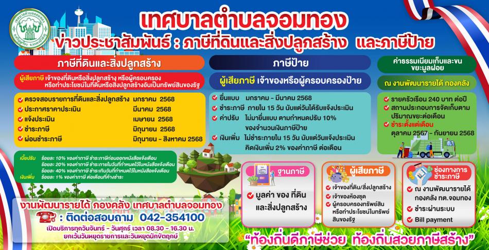ประชาสัมพันธ์ ภาษีที่ดิน และสิ่งปลูกสร้าง และภาษีป้าย ประจำปี 2568 [4 มกราคม 2568]