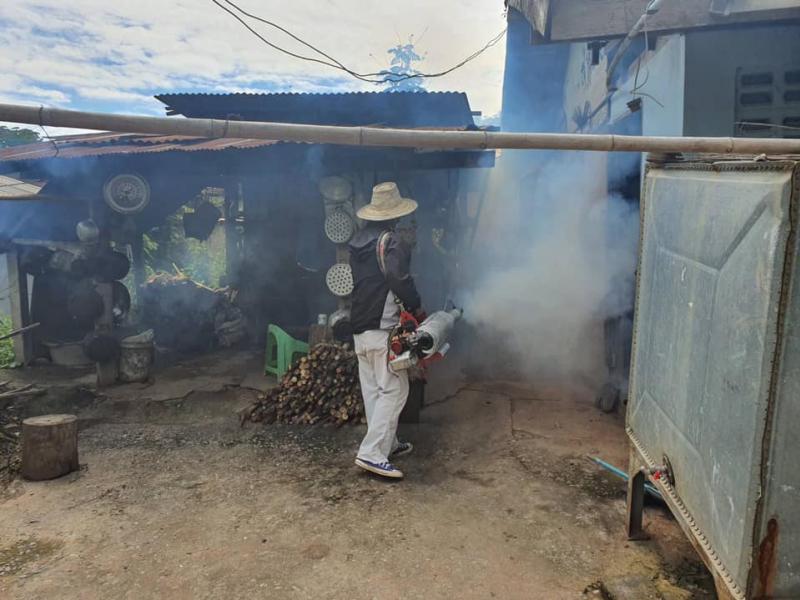 กองสาธารณสุขและสิ่งแวดล้อม ร่วมกับคณะอาสาสมัครสาธารณสุข รพสต.ศรีวิชัย ดำเนินการพ่นหมอกควันเพื่อกำจัดยุงลายซึ่งเป็นพาหะไข้เลือดออกบริเวณชุมชนบ้านศรีบุญเรืองและบ้านศรีนคร ภายใต้โครงการป้องกันควบคุมโรคไข้เลือดออก ประจำปี 2564